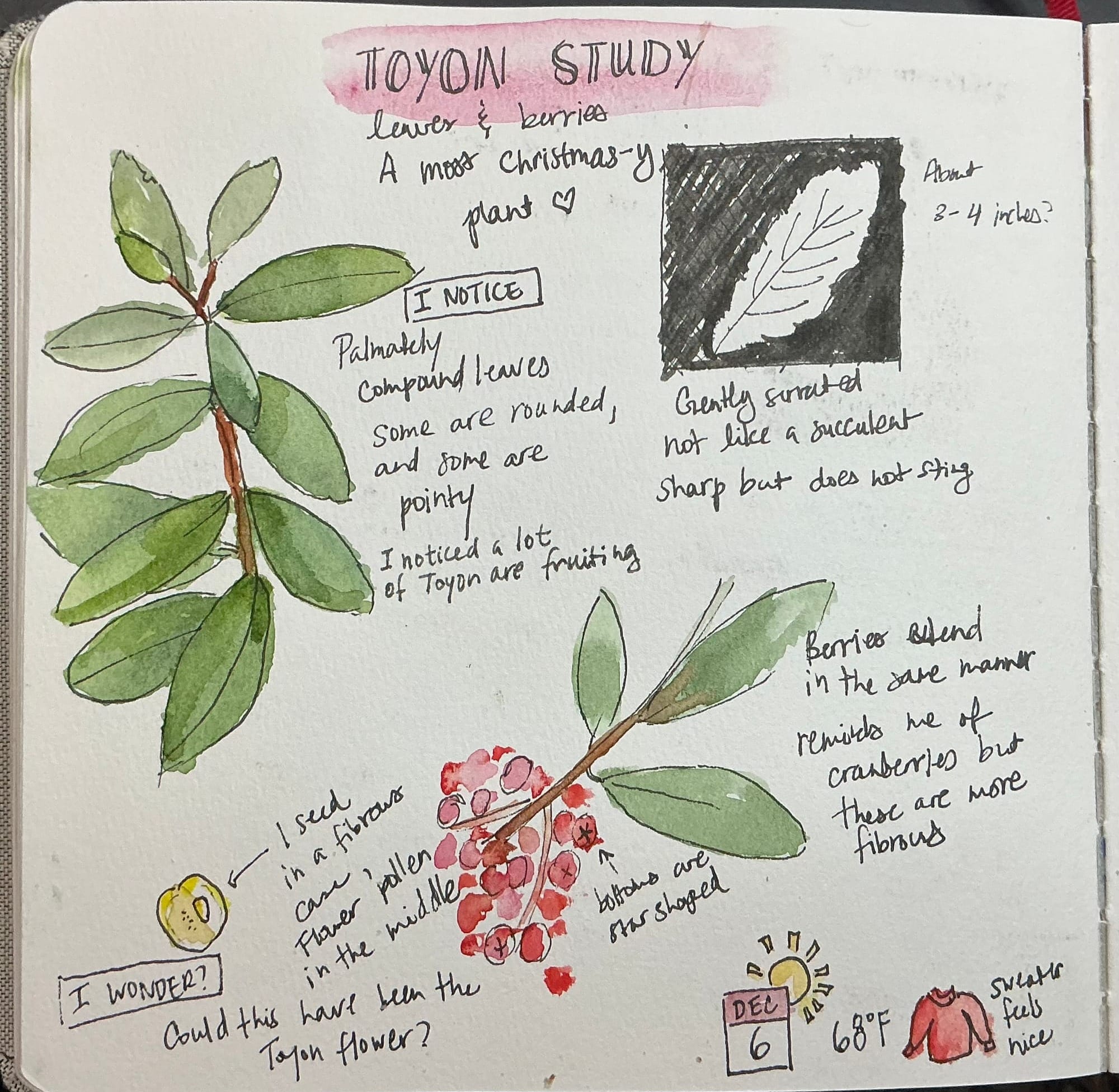 Some purists will say that nature journaling must be done outdoors. It must "feel good" in the wild to be real nature journaling. I am not a purist, because I remember what it is like to be a beginner. Also I find that I have great discomfort with extreme heat or extreme cold.