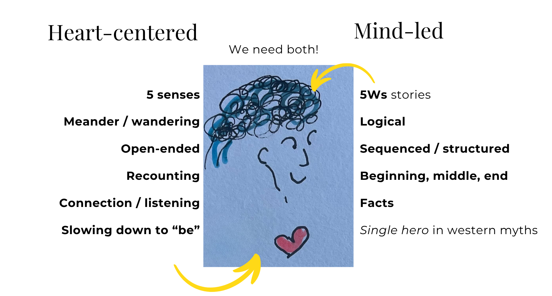 In this workshop, I introduced the idea of telling heart-centered stories vs trying to use the logical mind.
