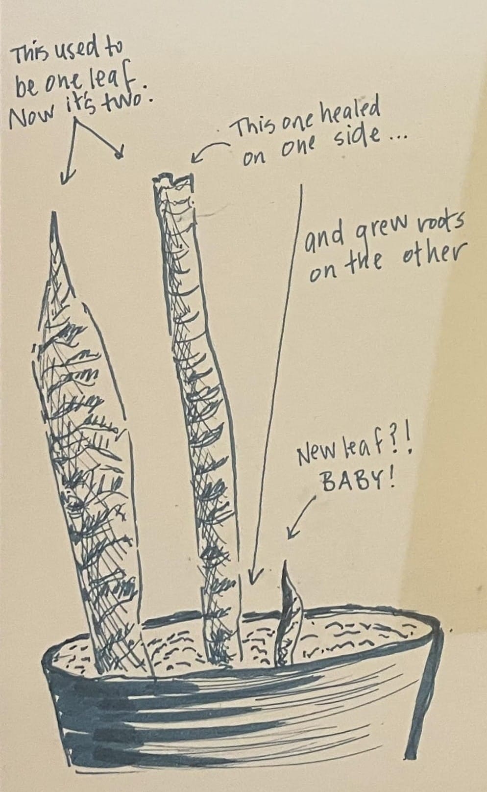We talked about the importance of adding labels to the picture. The dialogue in this piece helps us to understand the relationship between the observer and the plant. (PS: To the author, I hope you find me so I can credit you for this work!)